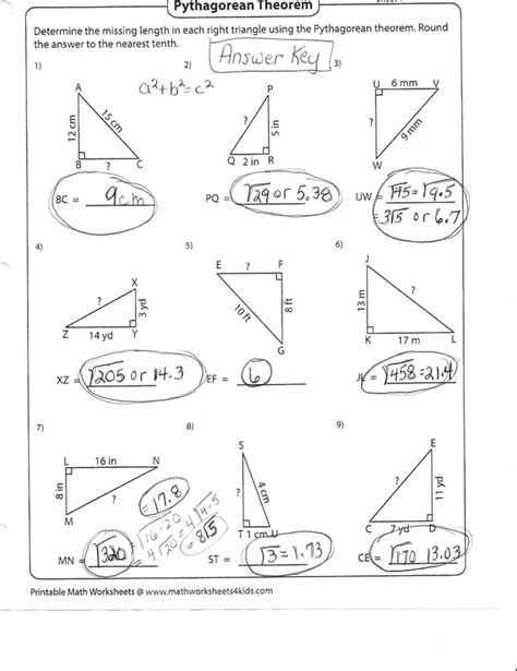 Answer Key Pythagorean Theorem Worksheet Answers